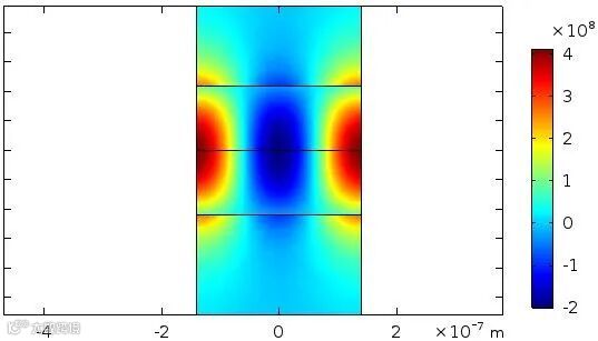 为了更清楚地体现出TM模式的电场是z方向,我们给出x-z切面上的电场Ez云图: