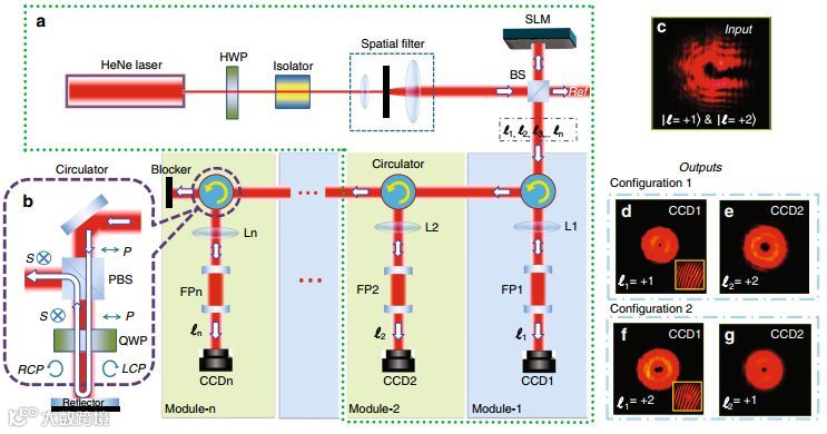 该文章展示了一种可重新-配置的OAM分选器,该分,类器可以同时处理多个OAM状态,同时保留原始状态。另外,通过这种模块化设计,可以通过增加数量的OAM状态轻松扩展系统。该OAM分拣机的基本构建元素是光学腔。因此,分选器通过使用基于共振的方法继承了许多优点,例如高选择性和高效率。由于这种方法的共振特性,可以抑制各种OAM状态之间的串扰。