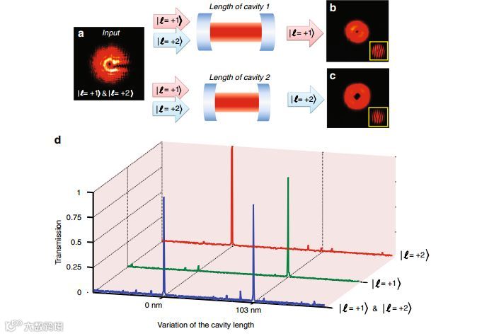 光的轨道角动量(OAM)在各个领域都有应用前景。但是,缺乏一种简单,动态的方法来对OAM状态进行分选而不改变其状态。该文章提出了一种可以动态过滤单个OAM状态并保留OAM状态以进行后续处理的技术。具有不同波长的OAM状态可以在谐振器中谐振,除了更改腔体的长度外,无需进行任何其他调制。