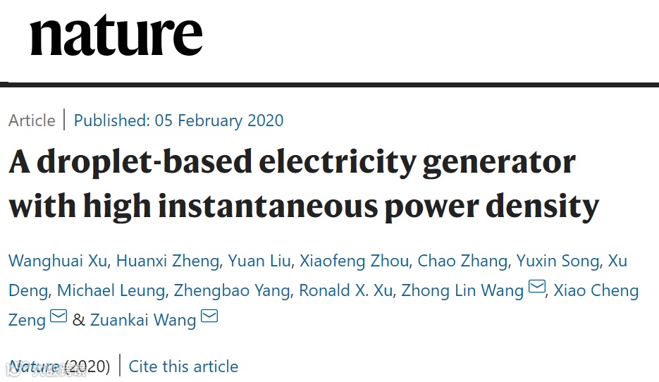 王钻开教授:如果说困难,那就是关于电荷分离的问题。为了保证发电机高效工作,水滴撞击表面后,需要尽快离开表面。我们最初尝试了超疏水材料,但是考虑到目前超疏水材料的耐候性差的特点,最终还是选择了普通的平面。我们发现,这种简单的设计,也能得到非常好的效果。