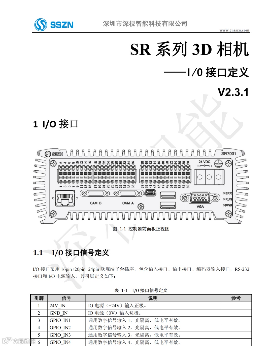 SR系列3D相机IO接口定义旨在协助用户更加全面地了解我们SR系列的线激光产品。为方便后续使用,您可在文末点击左下角阅读原文,以登陆深视智能官方网站注册下载更多资料。