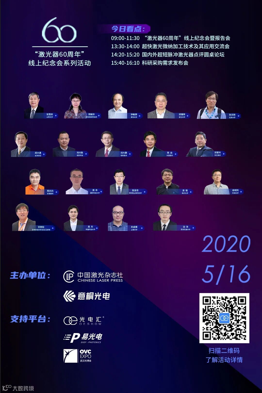 “激光器发明60周年”系列线上纪念直播日程如下: