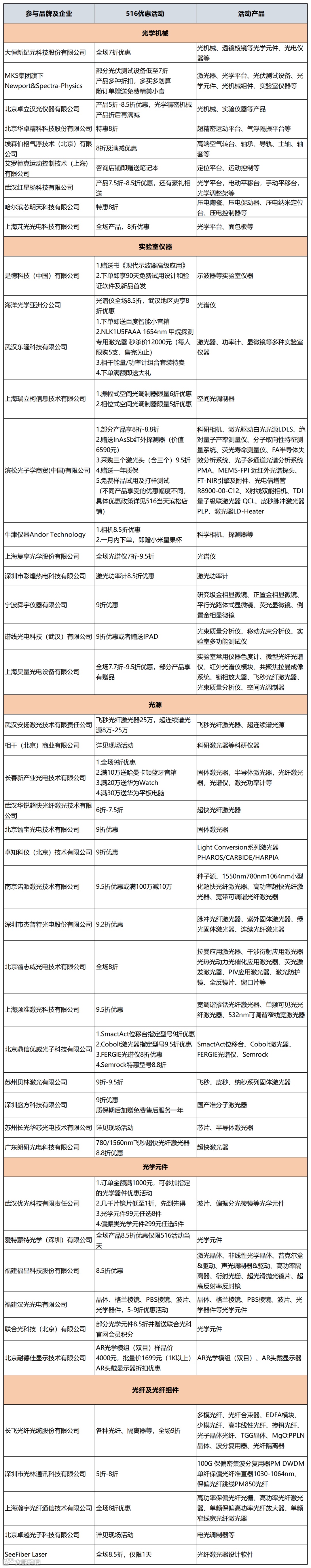 5月16日即将开启的“516科研光电产品采购节”,作为全网第一个科研光电产品线上集中采购活动,涉及光学元件、光学机械设备、光纤设备、光源器件、实验室仪器、成像系统器件六大类,超40家光学供应商将携众多产品、超级折扣力度倾情亮相,为科研人员助力,为科研实验省钱。