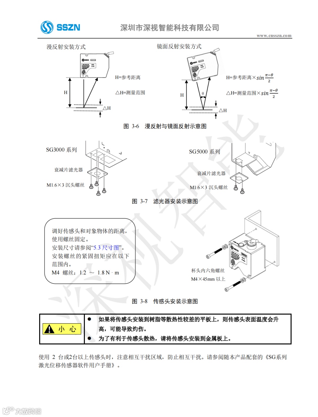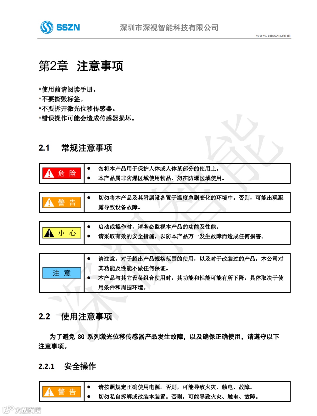 SG系列激光位移传感器硬件用户手册旨在协助用户更加全面地了解我们SG系列的点激光产品。为方便后续使用,您可在文末点击左下角阅读原文,以登陆深视智能官方网站注册下载更多资料。