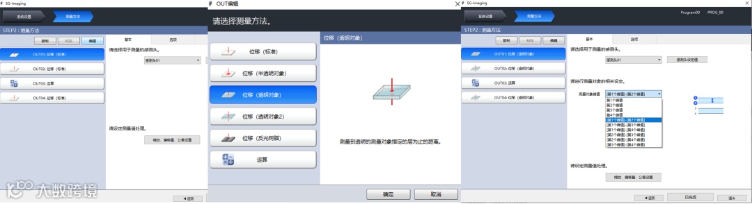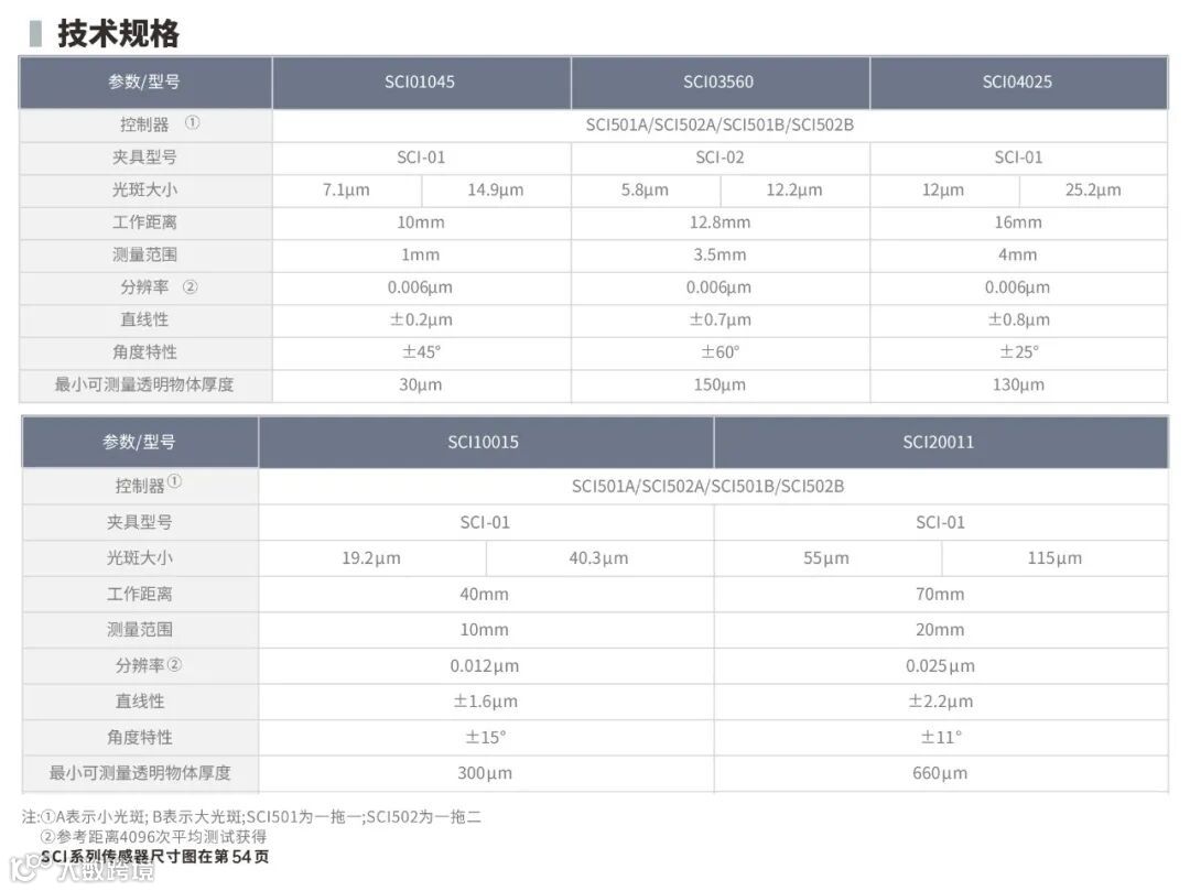 透明物体测厚建议使用小光斑。根据控制器确定光斑大小: