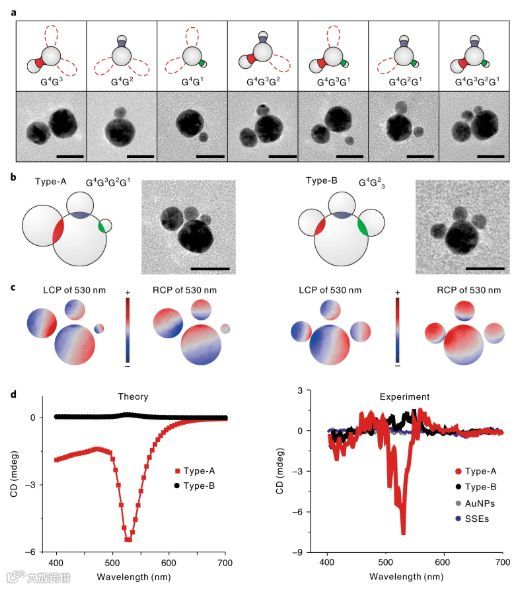图3. “胶体纳米颗粒”分子的各向异性和手性