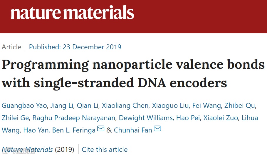 文献链接:Yao, G., Li, J., Li, Q. et al. Programming nanoparticle valence bonds with single-stranded DNA encoders. Nat. Mater. (2019)