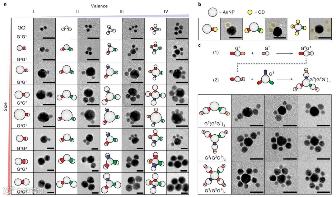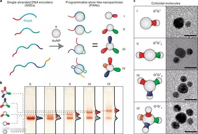 要点1. 研究人员把每一个金纳米颗粒都当成是一个“原子”,通过用交替的polyA/非polyA结构域编程每个编码器的顺序、长度和序列,研究人员合成了具有n价的可编程类原子纳米粒子(PANs),可用于组装一系列具有不同组成、大小、手性和线性的低配位胶体分子,各种各样,应有尽有!