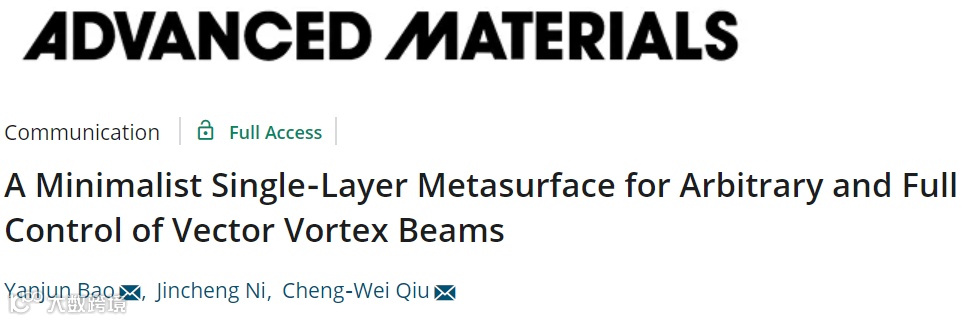 近日,来自中山大学和新加坡国立大学的研究人员利用单层的电介质超构表面结构,实现了任意相位和偏振态分布的,且强度的环行大小不依赖于拓扑荷变化的完美矢量涡旋光束。相关研究成果以 “A Minimalist Single-layer Metasurface for Arbitrary and Full Controls of Vector Vortex Beams”为题发表在Advanced Materials上。中山大学包燕军研究员是该论文的第一作者和通讯作者,新加坡国立大学仇成伟教授为该论文的共同通讯作者。