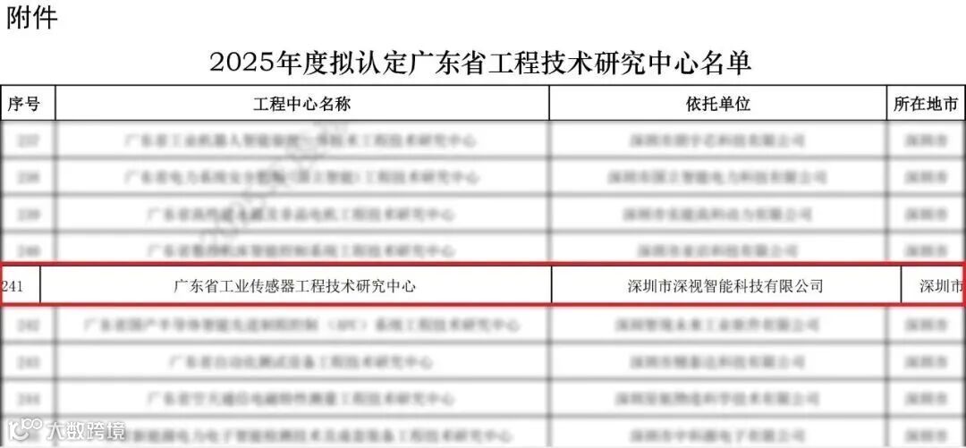 近日,广东省科学技术厅正式公示2025年度拟认定的广东省工程技术研究中心名单。由深圳市深视智能科技有限公司(以下简称“深视智能”)依托建设的“广东省工业传感器工程技术研究中心”成功入选,标志着公司在工业传感器领域的技术研发与成果转化能力获得省级权威认可。