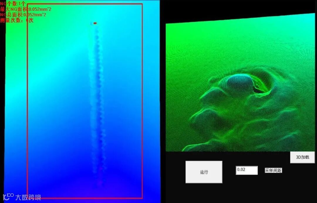 2. 功能强,稳定性好:相机可同时输出2D灰度图用于准确定位,3D深度图可稳定检测焊接出现的爆点、凹坑、焊穿等缺陷,漏杀率为0%,误判率<0.1%。