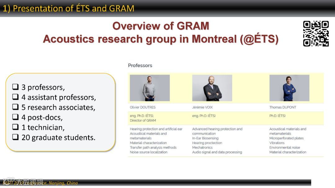 材料声学技术与产业化发展国际论坛(MATI 2019)魁北克高等技术学院(École de Technologie Supérieure)蒙特利尔声学研究团队(GRAM)负责人Olivier Doutres教授的主旨报告。