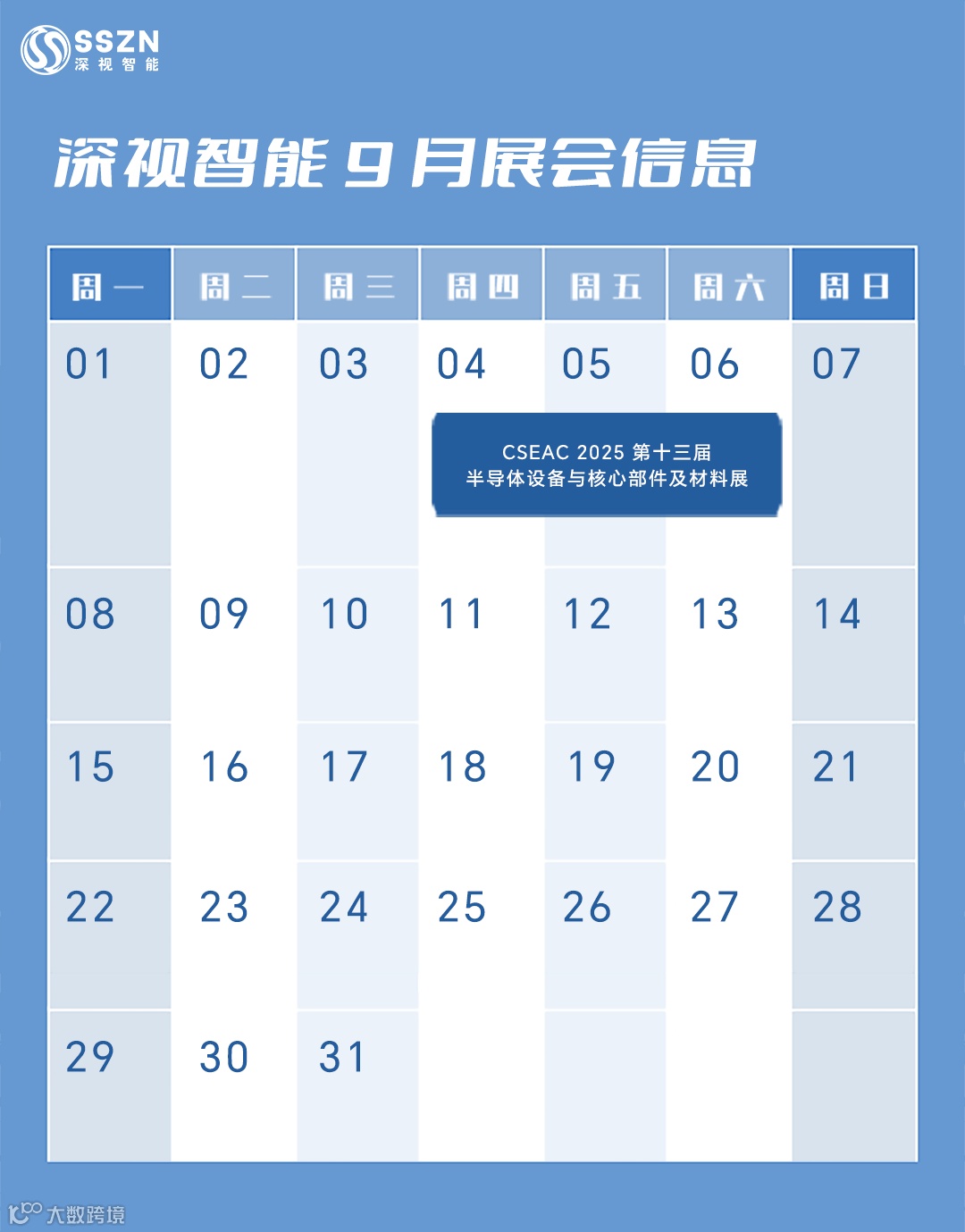 9月份,深视智能将携三维激光轮廓测量仪、激光位移传感器、光谱共焦位移传感器、对射型边缘测量传感器等王牌产品重磅亮相第十三届半导体设备与核心部件及材料展。