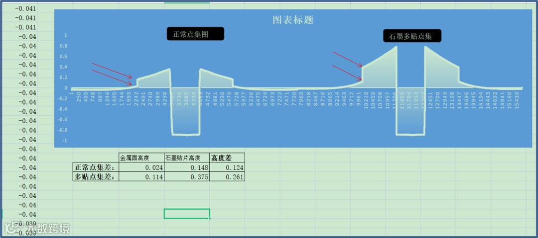 检测数据:石墨片有无多贴,石墨片多贴高度0.075mm。