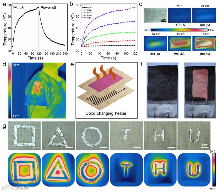 近日,来自清华大学的刘静教授和张莹莹教授的研究团队联合开发了一种液态金属智能服装的制备方法。利用这种方法可以方便快捷地在棉布上制备出大面积的液态金属电路,并且制备的液态金属电路可以随服装被任意折叠和拉伸。基于此制备方法,研究人员设计出具有人机交互、无线供电、柔性显示以及人体热管理等多种功能的智能服装系统。