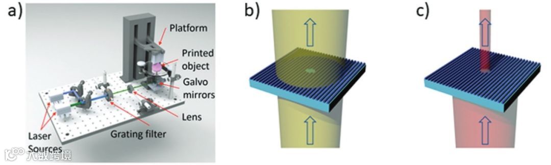 图4:可切换式多尺度打印机和激光滤片工作原理