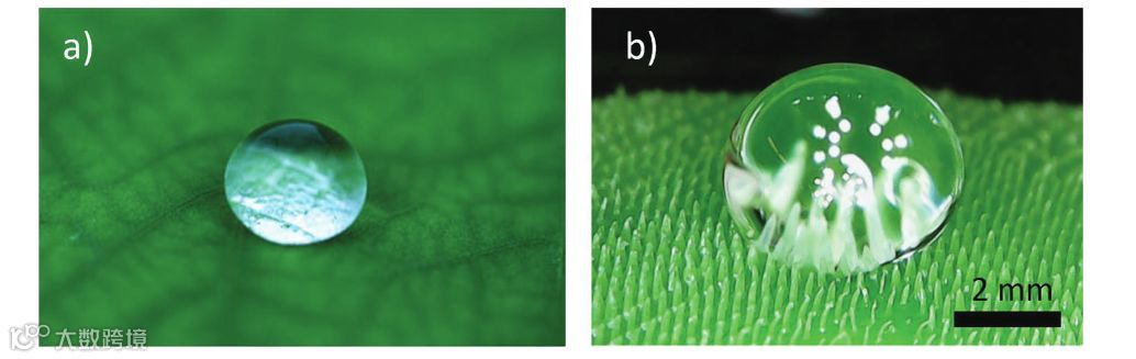 同时研究人员也打印出了仿生荷叶结构并且这种结构确实表现出了超疏水效果,其效果如下图所示。