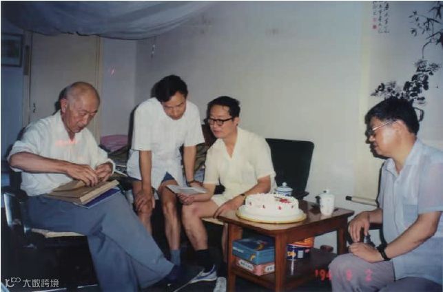 黄昆先生与学生们在家里讨论工作(摄于1994 年)