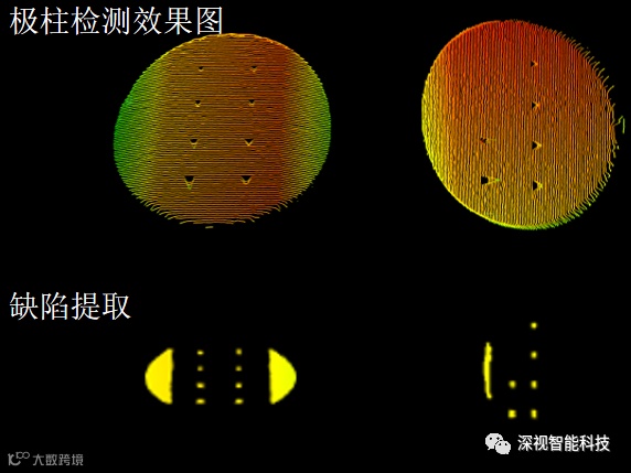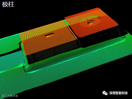 电池壳顶盖密封钉焊接后需要进行焊接质量检测,通过3D相机扫描成像并配合3D相机生成的2D灰度图可良好检出焊后有无爆点、凹坑、凸起、焊渣等缺陷。