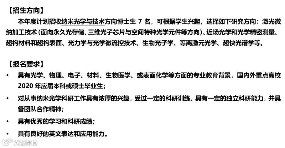 清华大学精密仪器系纳米光学团队 2019 年博士招生