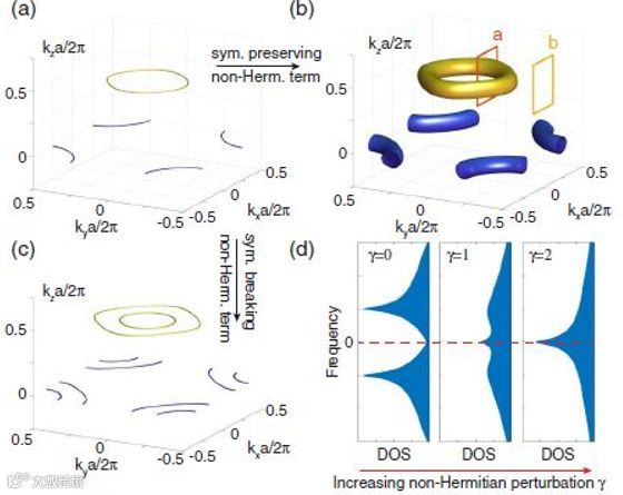近日来自哈佛大学和宾夕法尼亚大学的联合团队报道了一项新的研究成果。通过构造三维光子晶体并进行精确的光学设计,实现了非厄米系统相变边界的二维表面,从而大大扩展了非厄米系统的研究空间。研究人员发现,特殊的对称性是构建高维奇异面的关键。通过使用对称性保护的拓扑节点线(nodal lines)的非厄米变形,研究人员成功构造出非厄米光子系统的奇异面,并研究了与之相关的拓扑性质。这为未来探索更高维度的奇异点系统以及相关的光子学应用铺平了道路。