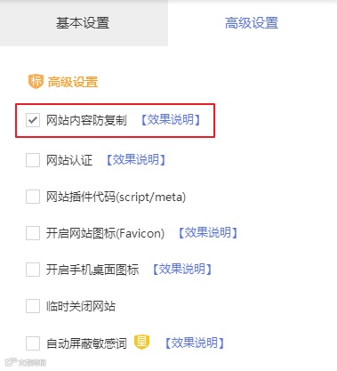 开启防复制功能,可防止手机网站内容被同行或竞争对手复制。