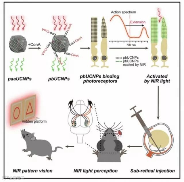 《Cell》的一篇新论文报道了这些发现。对小鼠的许多测试表明它们也获得了NIR图案视觉,并且可以区分三角形、圆形和其他相对复杂的形状。“即使在日光条件下,经过处理的老鼠也能够感知这些光线模式,”研究人员指出,“这表明纳米粒子与传统视觉同时工作。”