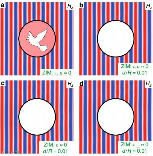 c.ZIM层由单零介质组成,ε= 0.0001,厚度dZIM = 0.005R。