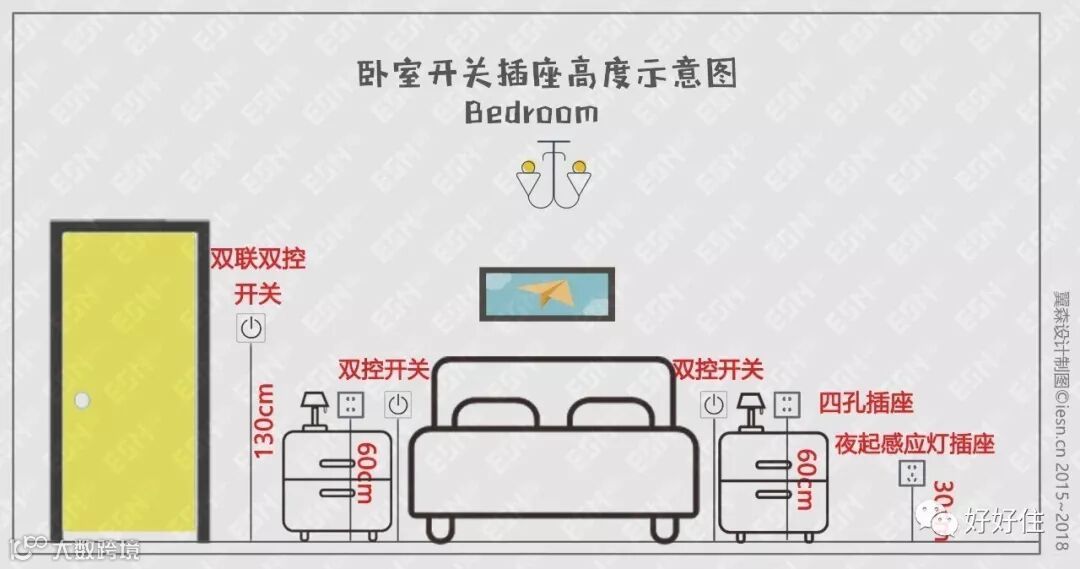 ▲ 卧室插座高度示意图。