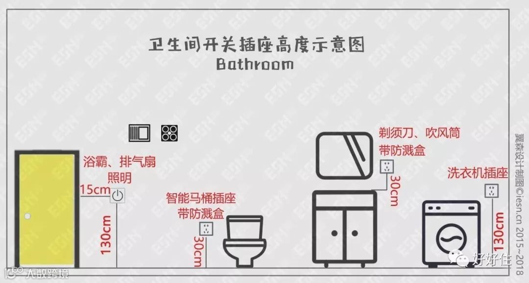▲卫生间插座高度示意图。