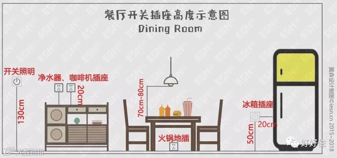▲ 餐厅插座高度示意图。