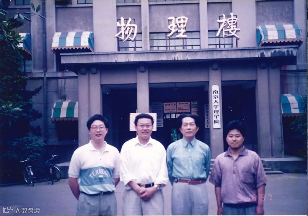 本文作者(左二)与闵先生(右二)的合影,摄于南京大学物理楼前