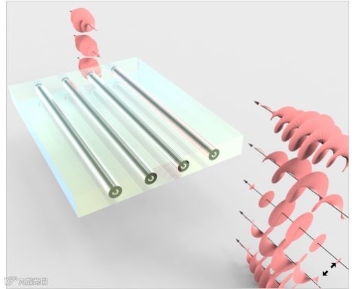 带有螺旋形波阵面的轨道角动量光子通过芯片内的波导