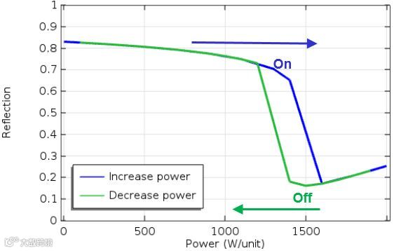 2,正如铁磁材料的JA模型要用瞬态求解器来一步步继承材料磁化的历史信息,这里光学双稳的仿真也需要继承前一步的结果作为初始值,来慢慢改变入射功率。这也是本文仿真的关键所在。有需要的朋友欢迎联系模数哥咨询。