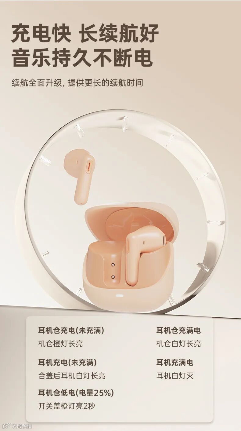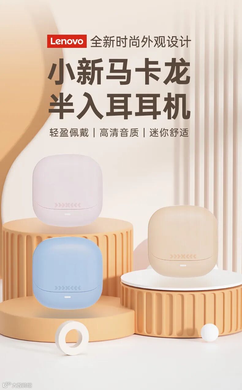 联想(Lenovo)小新马卡龙半入耳耳机 蓝牙5.3无线耳机 10mm生物振膜 长续航快速充电 游戏低延迟舒适佩戴 橙色/蓝色/粉色