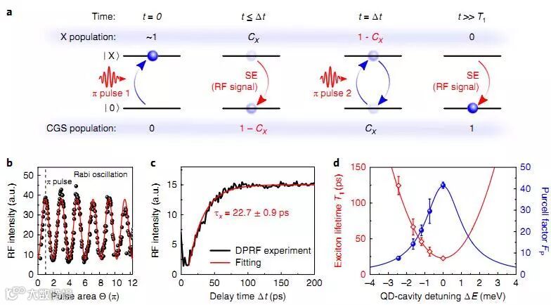 b,量子点的共振荧光强度作为单脉冲的脉冲面积Θ的函数;