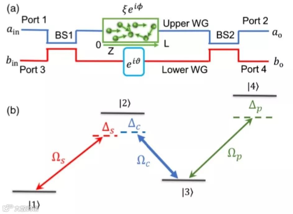 (b)用于诱导手性克尔非线性的N型原子能级图。
