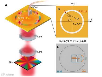 相干表面等离子激元极化基元(surface plasmon polariton, SPP)场的剪裁设计(tailor),为许多纳米光子应用带来了全新的机遇。在以往的研究中,基于光斑系综(an ensemble of spots)已经实现了聚焦SPP斑点的扫描和SPP场分布的设计。然而,由于SPP通常是被高亮度、相干的激光所激发,因此相邻光斑之间的干扰是不可避免的,并且会影响整体SPP场分布。近日,来自深圳大学的袁小聪教授、林佼教授领衔的研究团队,联合澳大利亚拉筹伯大学、皇家墨尔本理工大学和墨尔本大学的研究人员,通过考虑将相干场作为一个整体而非分立的光斑,报道了一个用以生成可剪裁二维SPP场分布的可重构(reconfigurable)和波长无关的研究平台。并且,这种技术可以实现单片SPP场相位梯度方向(即面内能量流的方向)的动态调控;其所需的相位信息是由入射激光束携带的,不需要引入与波长相关的纳米结构,因而可以用于各种波长的调控。基于该研究思路,可以拓展到许多不同的应用领域:例如,强度分布和能量流的有效控制将有可能实现利用等离子镊子对金属纳米粒子的动态控制;SPP的宽带激发能力可用于不同颜色SPP的产生、高速面内通信以及大容量数据存储。这种新方法揭示了2D相干场分布的固有约束条件,并且同样适用于声表面波等其他二维表面受限波动系统,在相关领域的结构设计与研究方面具有重要的指导意义。相关研究发表在近期的《Science Advances》上。