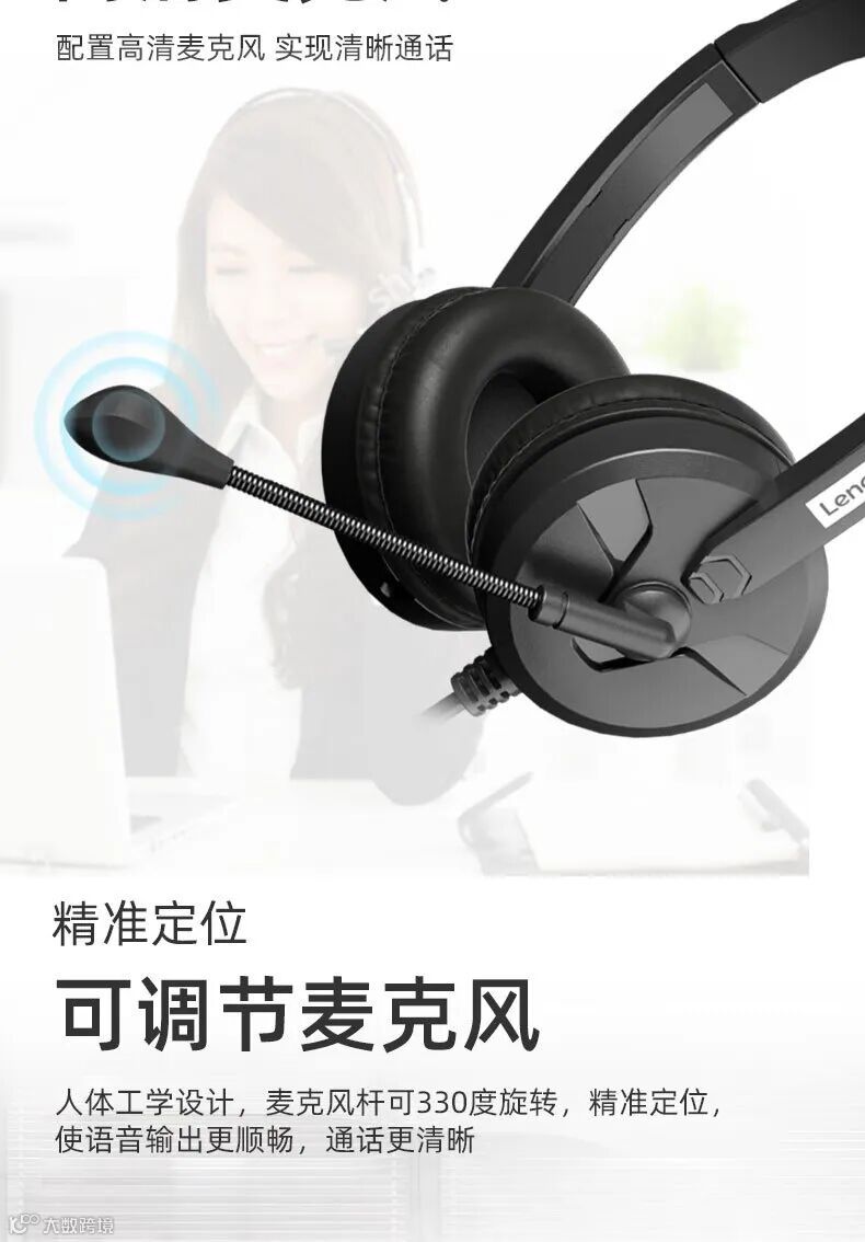联想E04头戴式有线耳机话务客服商务专用不闷耳带麦克风降噪网课音乐学习台式笔记本拯救者3.5小巧迷你 单圆孔(20PCS/箱)