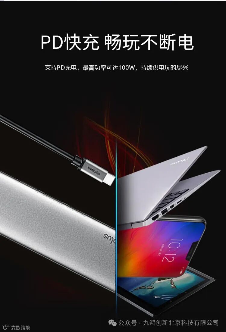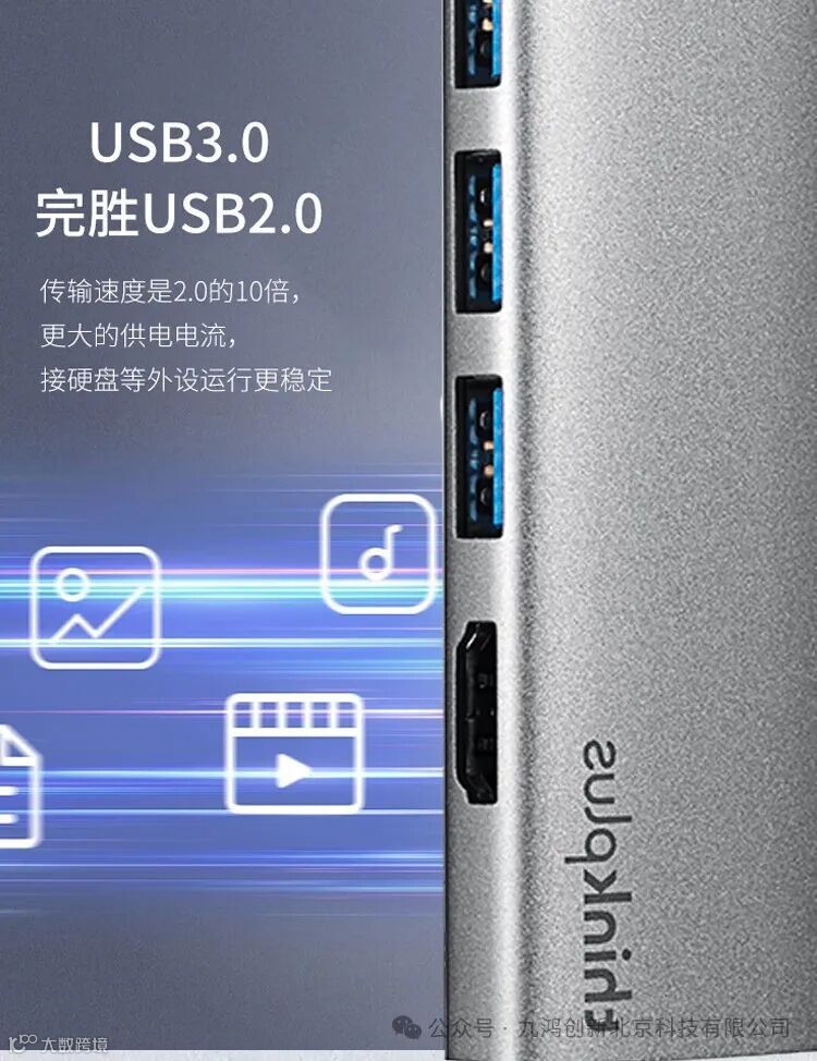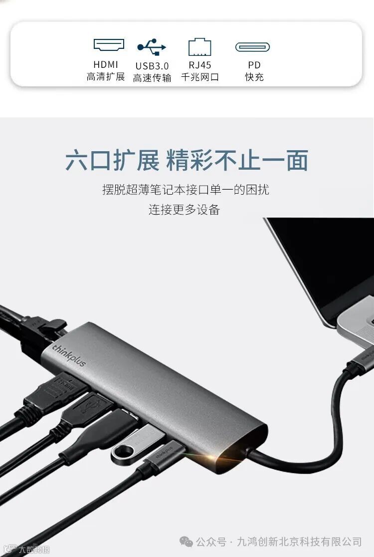铝合金材质,三口USB高速扩展,RJ45千兆网口告别Wifi卡频,HDMI高清4K视频转接,支持PD快充供电!