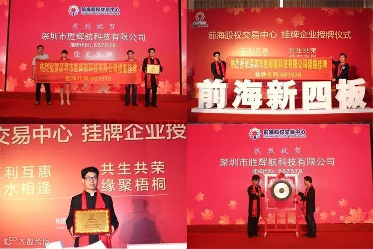 4月21日,新四板-前海股权交易中心在深圳市福田香格里拉举行隆重的企业挂牌仪式,深圳市胜辉航科技有限公司(挂牌代码:667578)等45家企业成功在该交易中心挂牌。