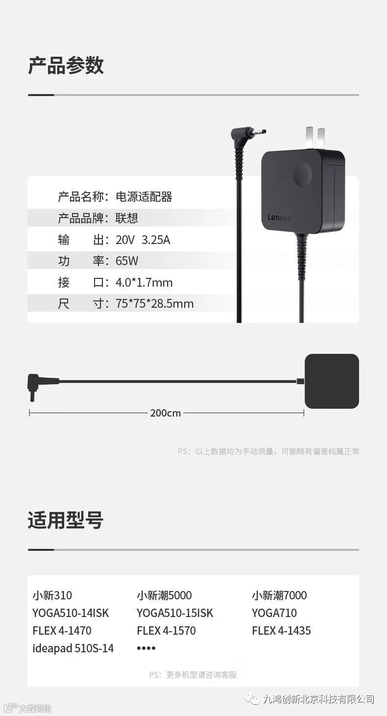 导读:联想65W细圆孔适配器