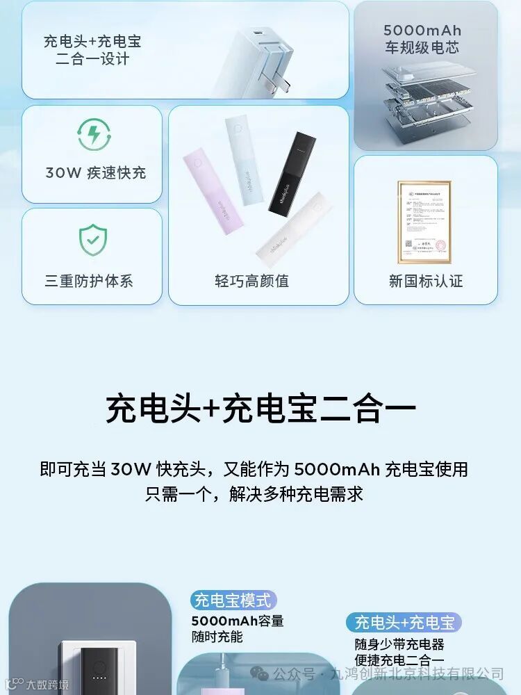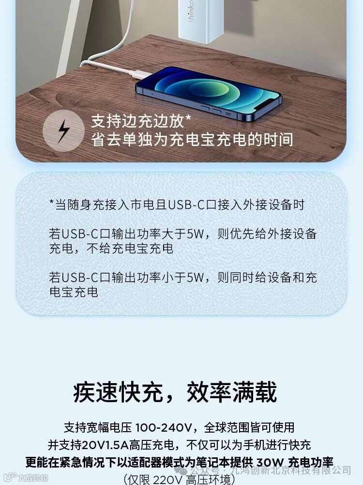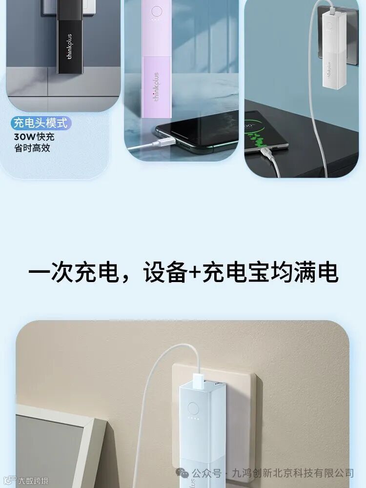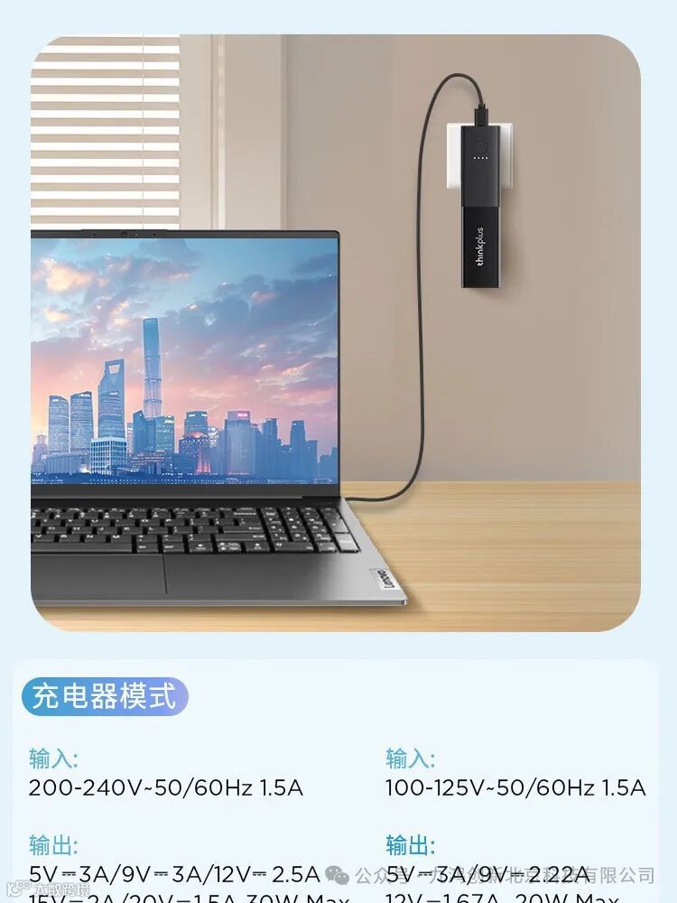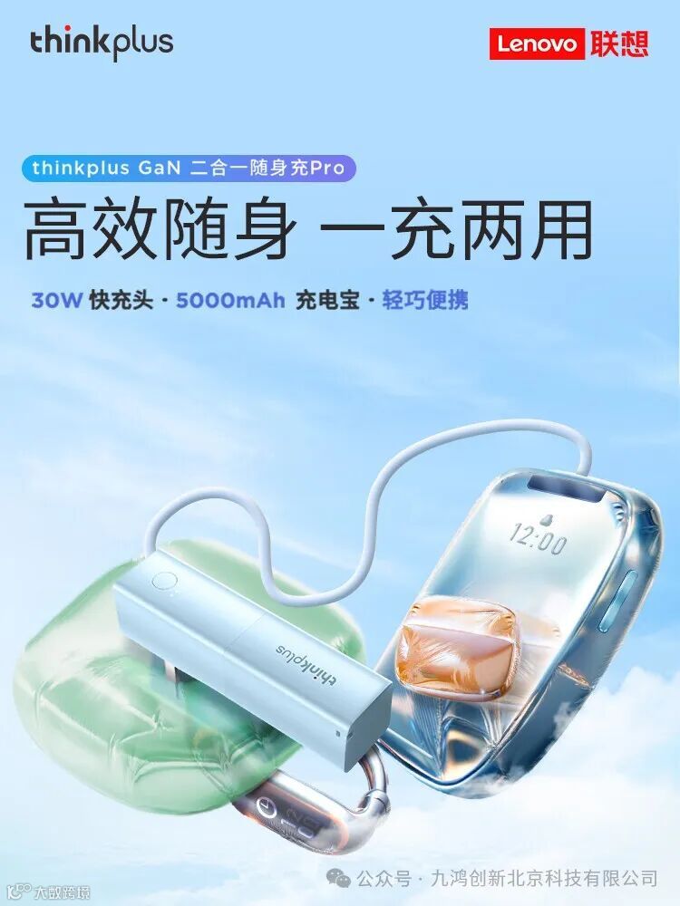 ThinkPlusthinkplusGaN二合一随身充5000mAh大容量充电宝手机笔记本30W移动电源(24PCS/箱)