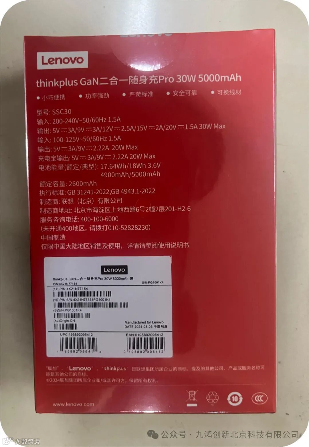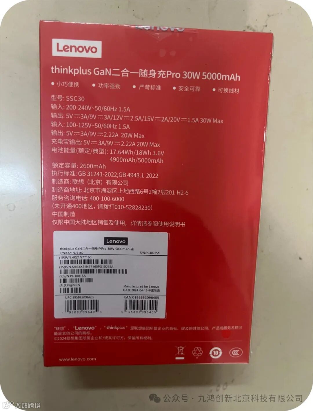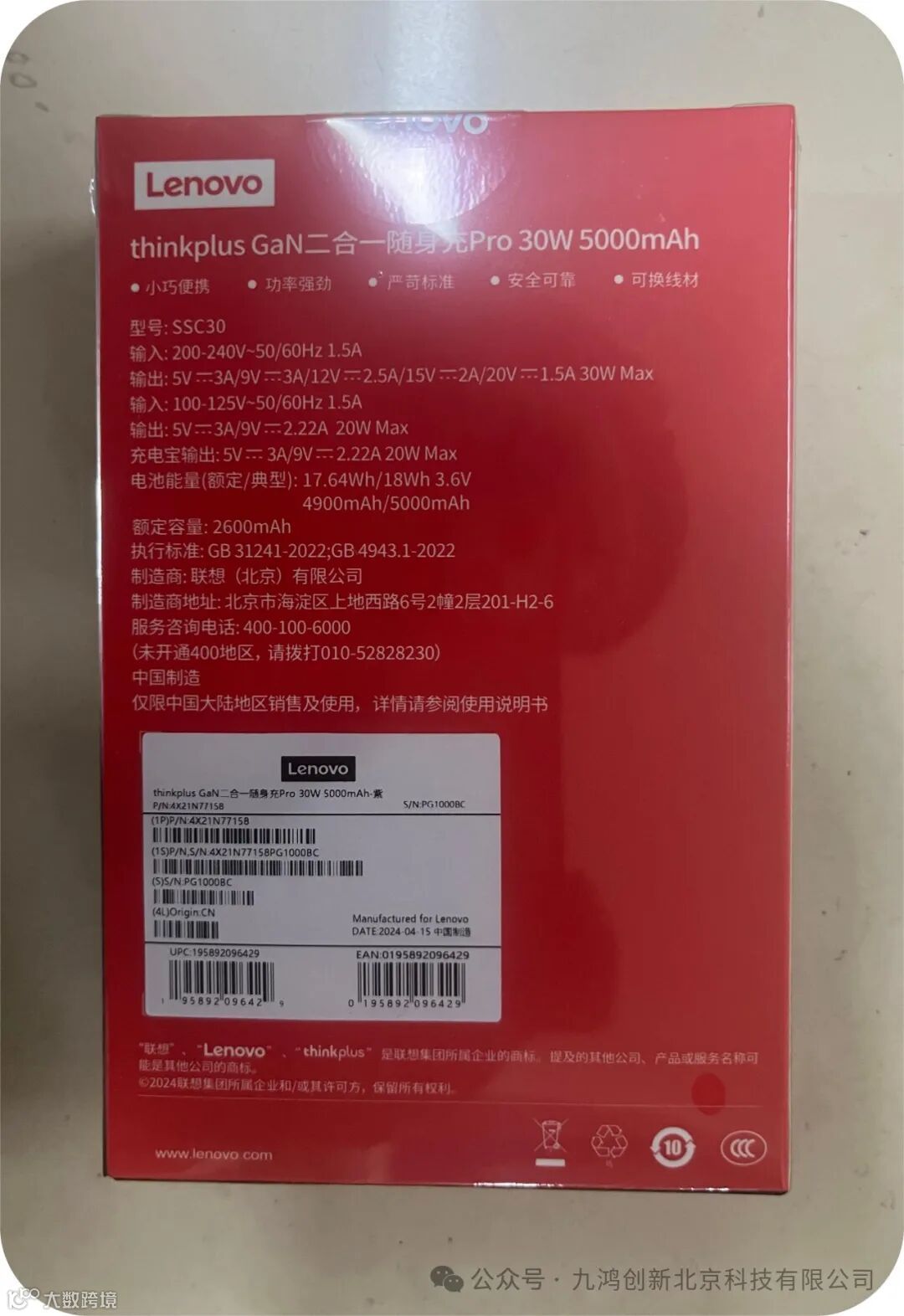 ThinkPlusthinkplusGaN二合一随身充5000mAh大容量充电宝手机笔记本30W移动电源(24PCS/箱)