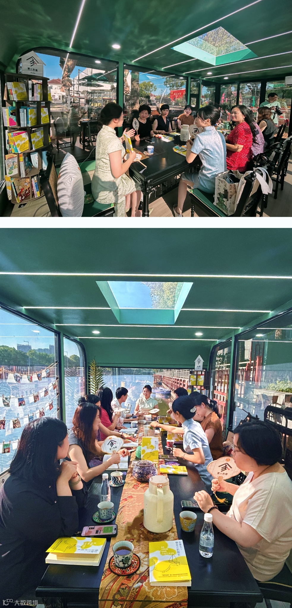 下午环节——《自律力:做自己的船长》新书交流会在上海首家可移动的船上书屋——镜泊秦汉“家+书屋”家庭教育新空间上惬意开启。青浦区的女企业家们身着优雅的旗袍,伴着粼粼波光款款落座,举手投足间尽显知性与温婉,为这场水上书香之约更添一抹灵动韵味。MUSINESS音娱文创科技董事长、畅销书作家童小言与大家围绕新书展开交流,谈书论道间,既有对自律本质的深度剖析,也有结合生活场景的实践分享。童小言说:“自律并非简单的自我约束,而是一种对人生的主动选择 ,是在纷繁复杂的世界中,找到那条既能‘予人快乐’也滋养自己的‘大道’。真正的自律,不是自我折磨,而是通过专注当下,学习智慧,去拓展生命的宽度和可能性。”