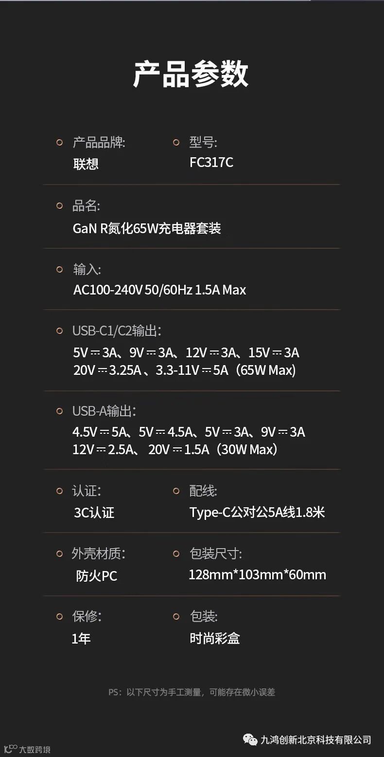 导读:联想(Lenovo)原装笔记本充电器 65W氮化镓GaN充电器type-c 65W电源适配器 2C1A三口