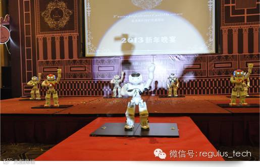机器人能在晚宴上进行流畅华丽的集体表演,他们整齐地唱歌跳舞,并与灯光、音乐完美的结合,让人有种眼前一亮的感觉,使表演在整个活动中脱颖而出。聪明的他还能与主持人进行互动问答,令晚宴表演充满科技感和新鲜感。