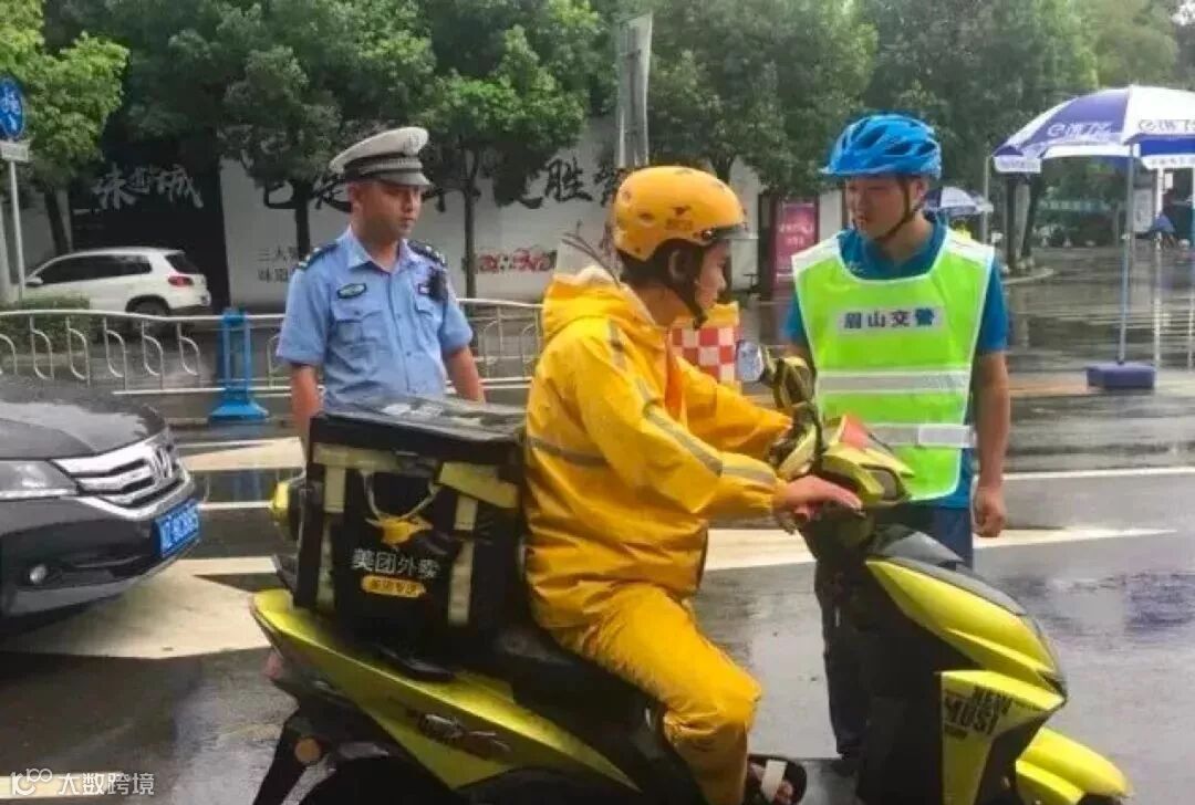 交警蜀黍和外卖小哥都是交通安全的重要参与者