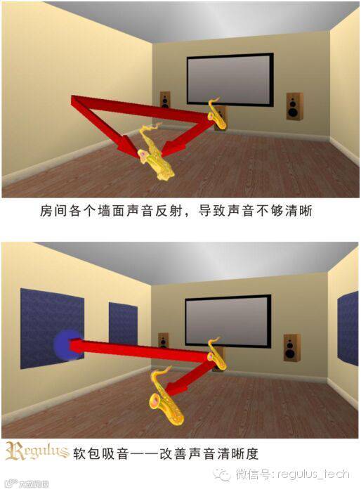 前墙要做得硬碉,可以保存一定的低频,使低频能更好的向前延伸;墙角是驻波最强的地方,地墙角摆放书架、CD架等特件能对声音有很大的帮助;