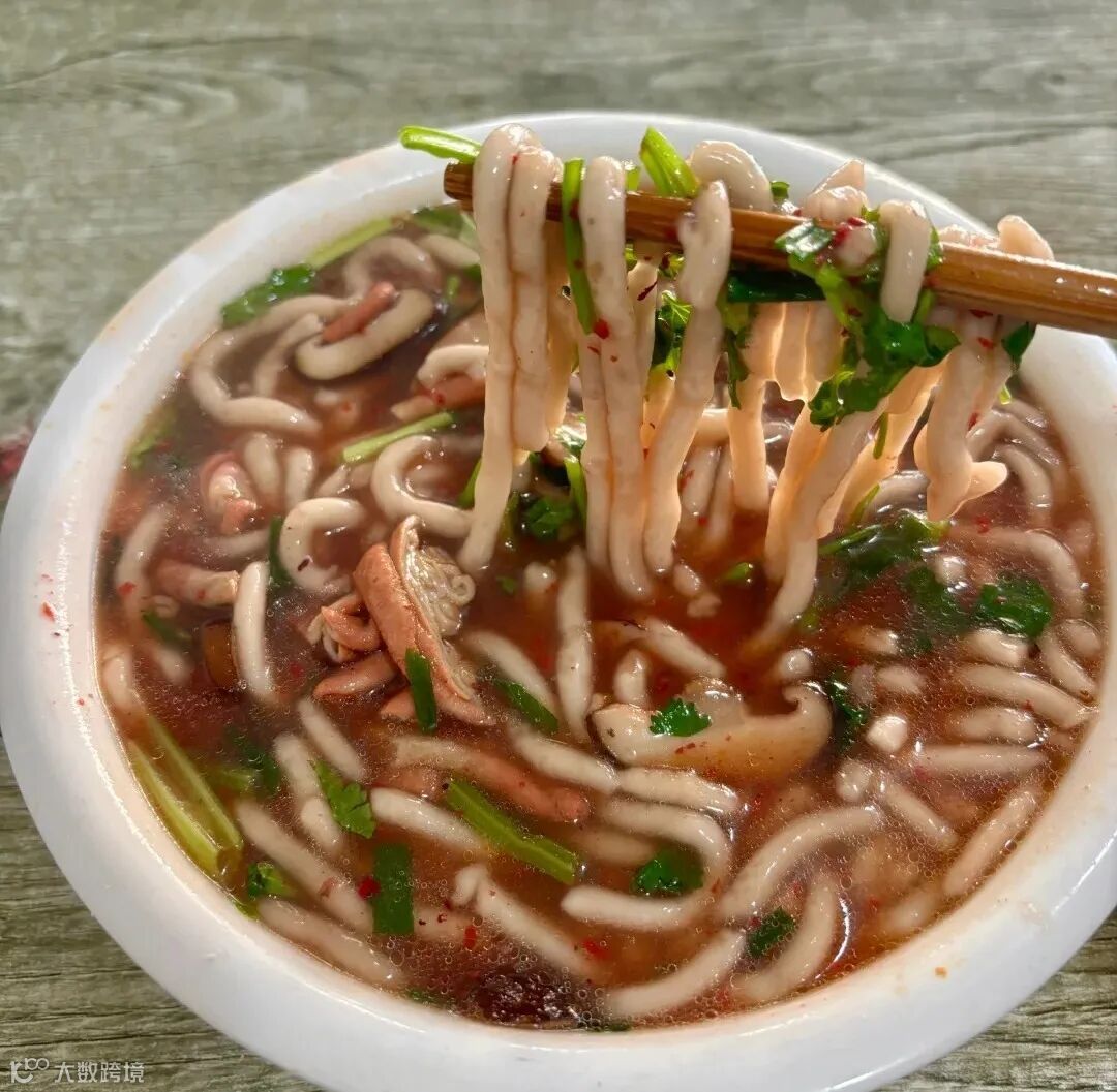 纯野生黄鱼去骨剁泥,万次捶打出胶质"面团",擀薄切丝晒成银线。久煮不糊,咬下竟有鱼肉纤维的弹韧!汤头必加本地小牡蛎与紫菜,鲜到像生吞海潮。传说清代渔夫为病母发明,如今游子离家必扛十斤——这是能邮寄的故乡月光。